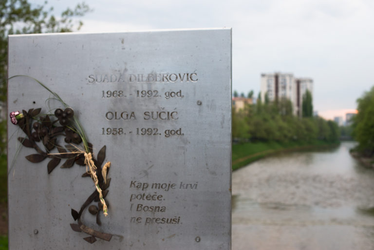 Se considera el 5 de abril de 1992 como la fecha en la que se inició el asedio de Sarajevo. Ante los movimientos de tropas del ejército Yugoslavo, una muchedumbre de cincuenta mil personas sin distinción de etnias ni religiones recorrió los márgenes del río para protestar contra la inminente guerra. Francotiradores serbios ocultos en el hotel Holiday Inn dispararon contra la muchedumbre desarmada, asesinando a seis personas. Las primeras en caer fueron dos mujeres, una estudiante de 23 años (Suada Dilberovic) y una funcionaria del parlamento bosnio de 33 (Olga Sučić). Se las considera las dos primeras víctimas del sitio de Sarajevo. Hoy el puente lleva el nombre de ambas, sin embargo, el lugar ha pasado a la historia por la muerte de otras dos personas, las víctimas más famosas del asedio: Admira Ismić y Boško Brkić. Los Romeo y Julieta de Sarajevo