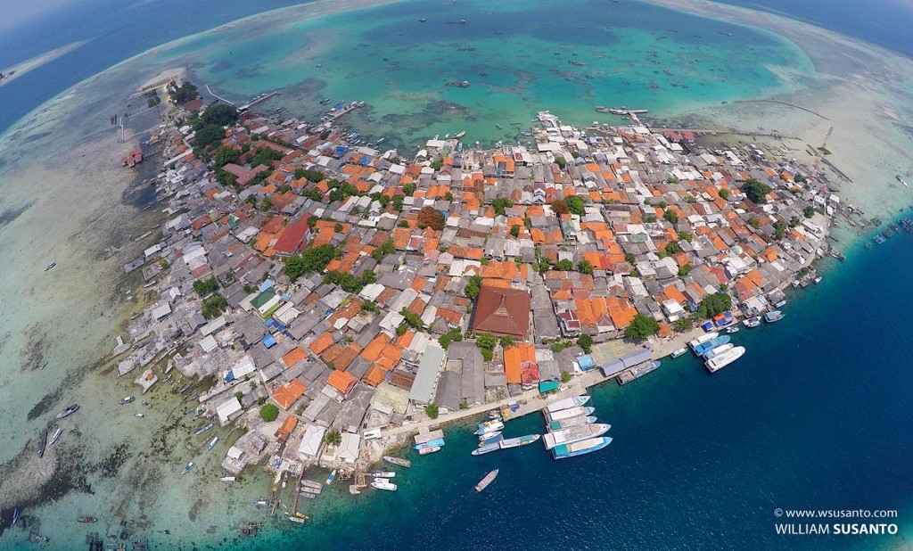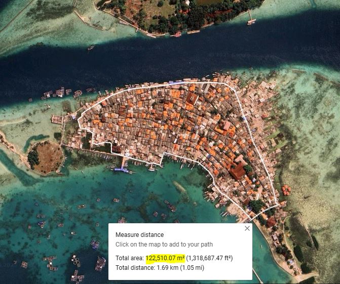 Bueno, entonces, ¿cuál es la puñetera isla más densamente poblada del Planeta? Bien, tenemos nada menos que tres candidatas en Indonesia. Empecemos con la isla de Terong, un islote muy cerquita de Singapur que pertenece a la ciudad de Batam. 40.000 metros cuadrados (cuatro hectáreas) y 3.000 habitantes. Tiene dos problemas, cada uno peor que el otro: no sólo la isla no mide lo que dice la Wikipedia sino un 50% más, sino que la población que indica se refiere al municipio de Pulau Terong (isla en indonesio es «Pulau»), que incluye la isla homónima pero también la de al lado, a la que está conectada por un puente. No es posible averiguar la población específica del islote pero seguro que es menor. Así que lo descartamos. Siguiente candidato. La Isla de Pajenekang, al sur de Sulawesi, o como la conocemos en español, Célebes. La Wikipedia indonesia le atrinuye 56.479 metros cuadrados de superficie y unos 2.700 habitantes. 67.000 personas por cada km². Ahí es nada. Dos problemas: la superficie proviene de una fuente oficial, pero la población no. De hecho no se sabe de dónde sale la cifra. Un [citation needed] de manual. En el portal estadístico de la regencia no es posible encontrar la población de la isla, pero sí del desa (el municipio, que abarca varias islas, llamado Mattiro Deceng), que sumaba 3.300 personas en 2016. La única fuente que indica la población de la isla es de 2006 y le atribuye 1.130 habitantes. Con esas cifras no parece probable que la cifra de 2.700 habitantes sea correcta. Nos vamos a por el tecer candidato. La Isla de Panggang pertenece a la cadena conocida como «de las Mil Islas» en la bahía de Yakarta. La Wikipedia, y las fuentes verificables que cita, le atribuyen 9 hectáreas de superficie y 6.260 habitantes, lo que significa una densidad de población asombrosa, de 69.555 habitantes por kilómetro cuadrado. Aún mejor: el dato de población más reciente es de 7.230 habitantes, así que la densidad poblacional asciende a la enloquecida cantidad de 81.000 habitantes por cada kilómetro cuadrado. ¿Hemos encontrado a nuestra ganadora? ¿La Isla-Más-Abarrotada-Del-Planeta? Me temo que no. De nuevo nos encontramos dos problemas. Uno: la población se refiere al municipio, que abarca la isla homónima y otra media docena, de las cuales al menos una (Pramuka) está claramente muy poblada, unos dos mil habitantes según la Wiki indonesia. Y dos: la superficie de la isla en ningún caso es menor a diez hectáreas. La medición en mapa más optimista que he conseguido hacer le da 122.000 metros cuadrados. No nos sirve como candidata; incluso asignándole toda la población del municipio a la isla, su densidad perdería frente al islote colombiano.