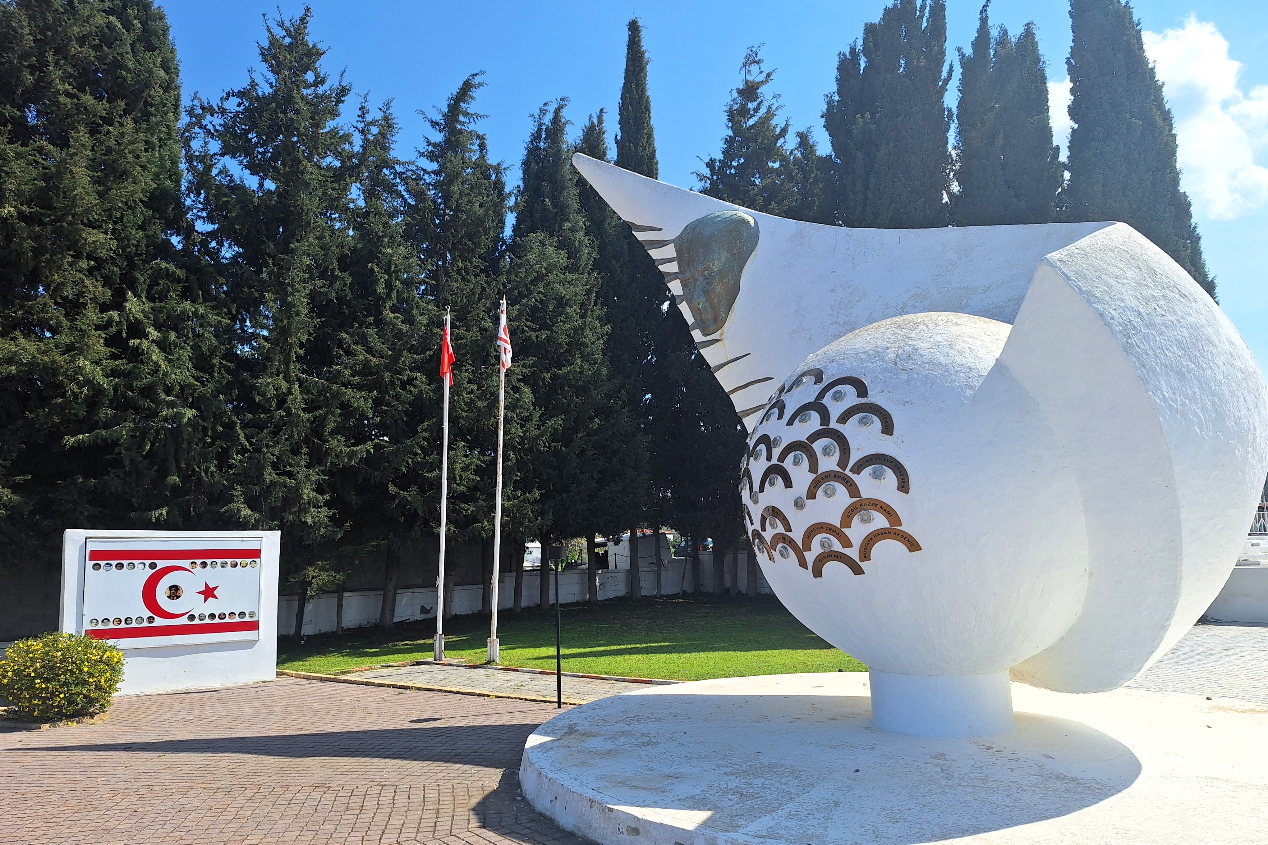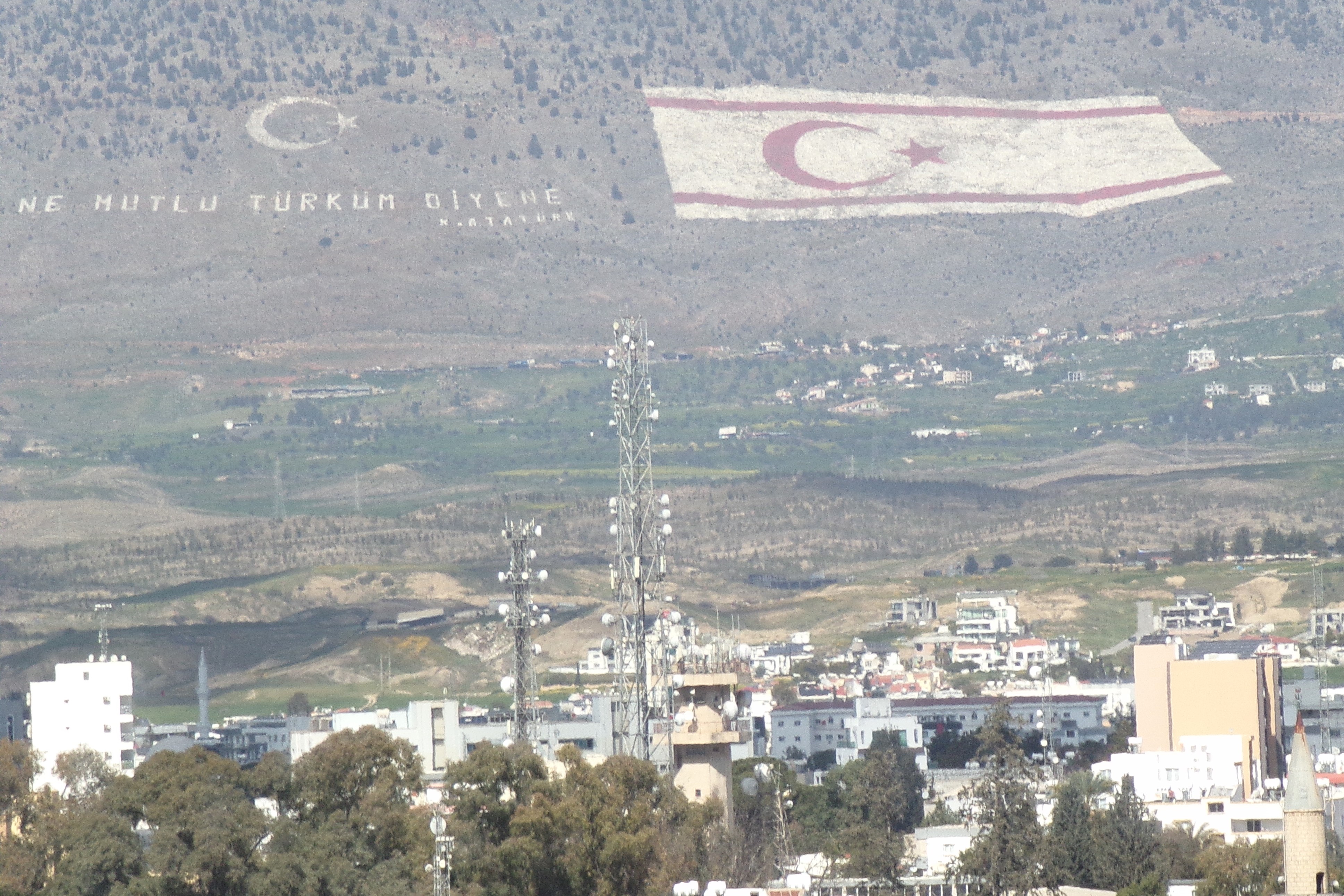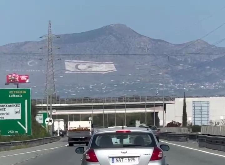 A pocos kilómetros de Nicosia la autopista enfila hacia el norte. El área metropolitana de la ciudad, que concentra más de la cuarta parte de la población del país, se extiende a ambos lados de la carretera. Polígonos industriales y zonas residenciales se suceden a ambos lados del aslfalto, pero los ojos no se desvían del frente. No sólo porque, bueno, es la manera correcta de conducir, sino porque al fondo, en las colinas tras la capital, se vislumbra la que probablemente es la bandera más grande del mundo. Ochenta mil metros cuadrados, ocho hectáreas/campos de fútbol sobre la ladera de una montaña, visibles desde toda Nicosia y sus alrededores. El símbolo de la República Turca del norte de Chipre, el país que (casi) nadie reconoce.