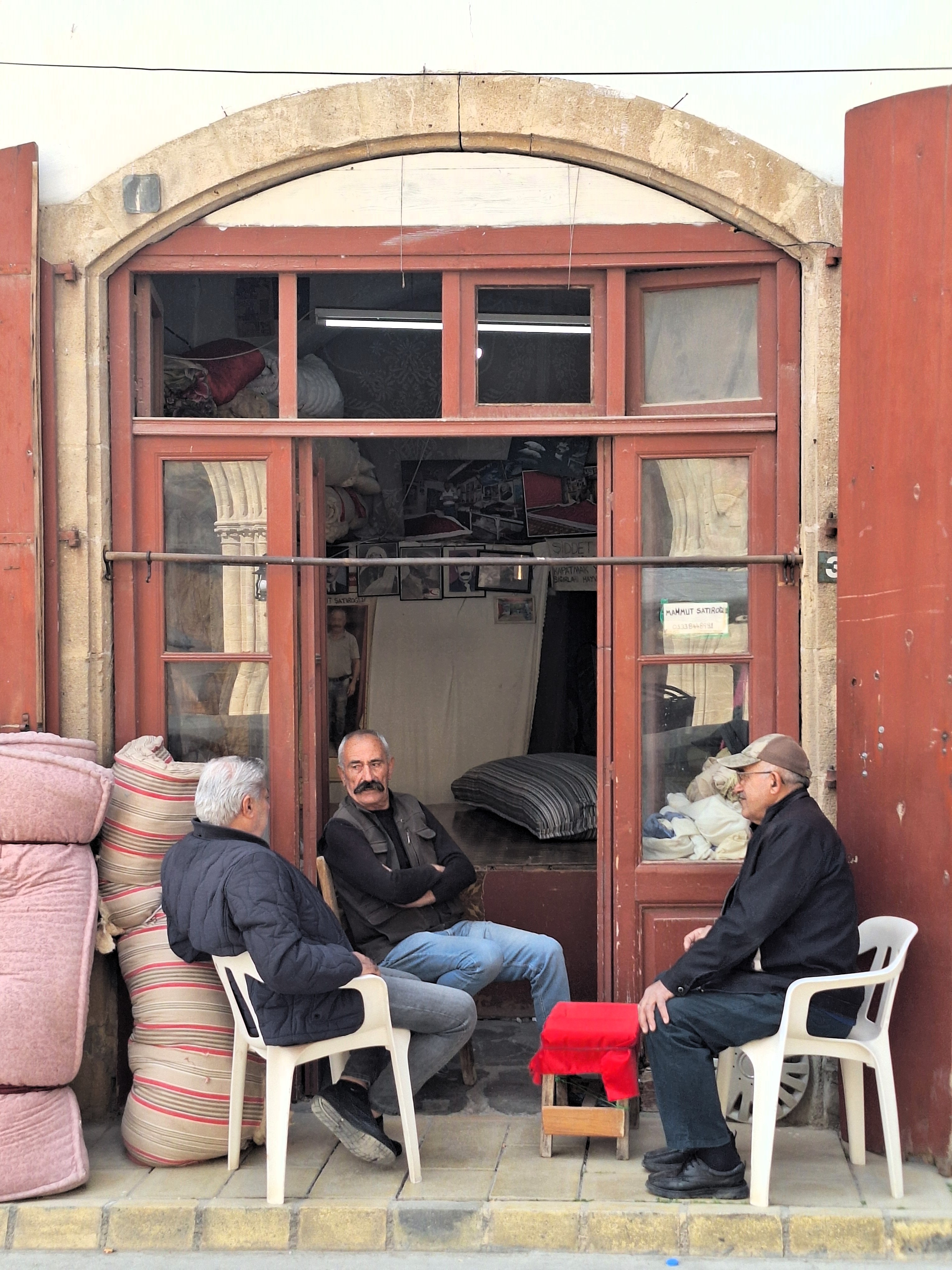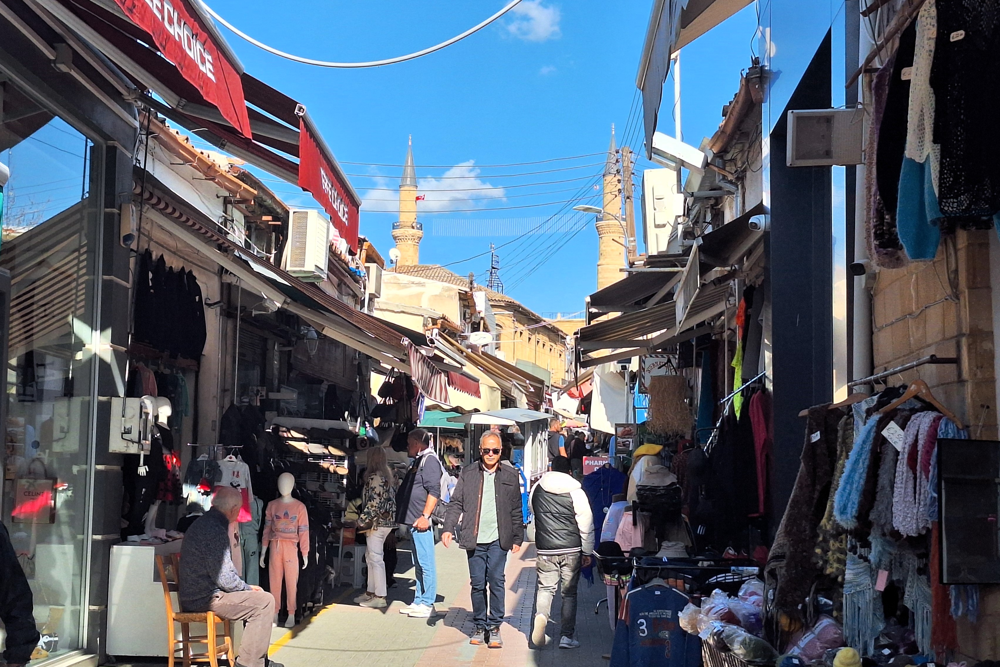Lo primero que se encuentra uno nada más cruzar la frontera en la calle Ledra es un bazar. Por supuesto. Lo que más se vende allí es ropa de marca falsificada, hasta el punto de que en la aduana chipriota hay carteles especificando que se registrarán las bolsas en busca de falsificaciones. Lo segundo que más se vende es tabaco, que cuesta aproximadamente la mitad que en el sur de la isla. En el centro de la ciudad está la Mezquita de Santa Sofía, que, como la de Estambul, solía ser una Catedral hasta que los musulmanes tomaron la ciudad. En el caso de la capital chipriota, sucedió en 1571, tras la primera invasión otomana. El interior de una catedral convertida en mezquita se hace raro a los ojos del occidental acostumbrado a la abundancia artística y al derroche imaginativo de nuestras catedrales. La sobriedad musulmana, que prohíbe la representación humana con motivos religiosos, se impone en el interior gótico de techos elevadísimos. El guardia de la puerta nos preguntó de dónde éramos. «Ah, españoles. ¡Turcos y españoles pueblos hermanos!». Unos días antes un misil Patriot guiado por tropas españolas había interceptado un dron iraní camino de Turquía y los españoles éramos vistos con aún mejores ojos de lo habitual.