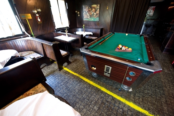 El billar del restaurante Kalin, situado en Eslovenia, fotografiado desde Croacia